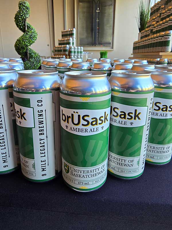 By Cassy Appelt and Fina NelsonBrÜSask, a USask-branded beer for campus events, brings together three worlds: the food culture of USask Culinary Services, the discovery-driven work of USask researchers, and the industry expertise of a local brewing company. The product showcases USask in a unique way—as a proof point of research excellence made tangible. But the real story is how these worlds came together to highlight the reach and relevance of USask research in a form people can connect with.
